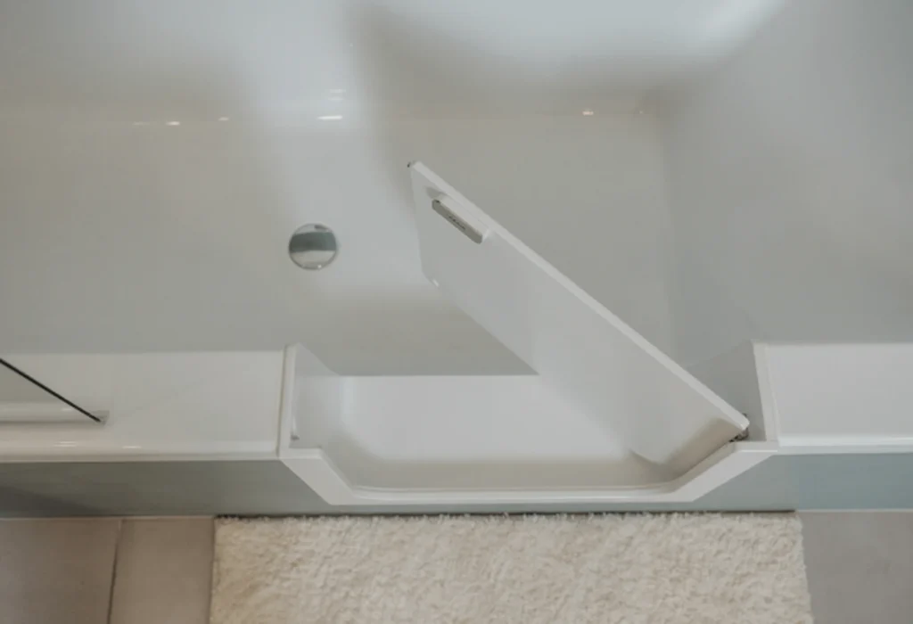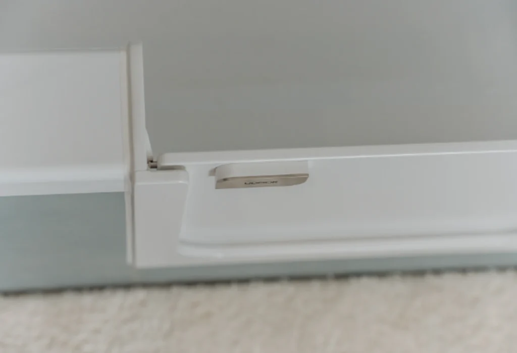 Zámek dvířek do vany je snadno použitelný díky ergonomickému designu.