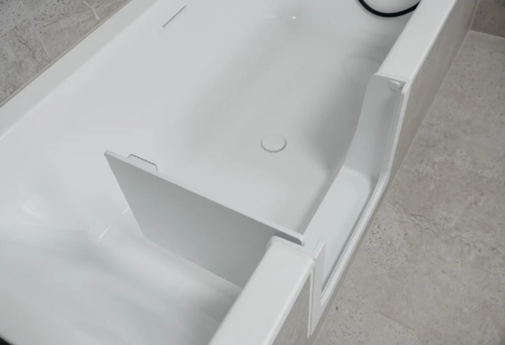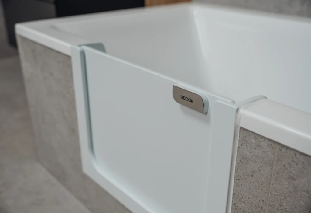 Dvířka do vany UDOOR jsou vodotěsná, takže se nemusíte zříkat koupání ve vaně.