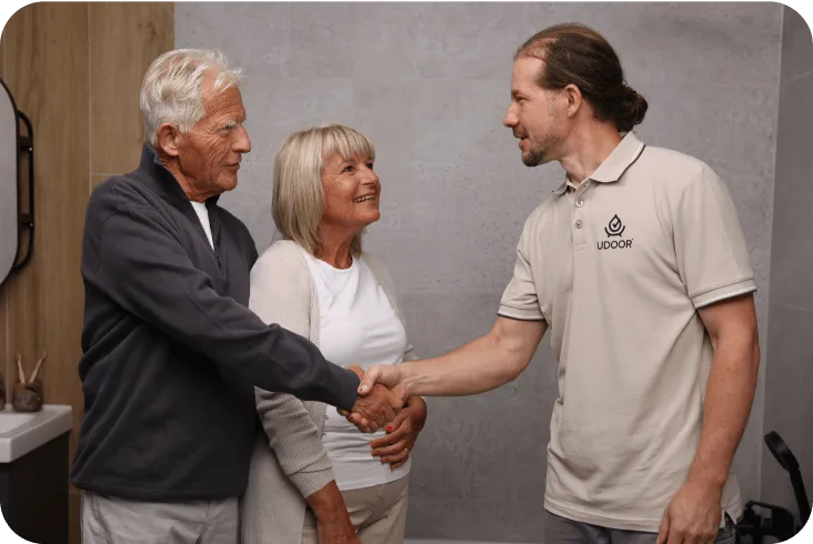 25.9.24 přesně podle předchozí domluvy proběhla instalace dvířek do vany UDOOR.S výsledkem práce vašeho technika jsem velmi spokojená - měl profesionální přístup,slušnost , milé vystupování a vstřícnost v průběhu celé instalace,byl velmi pečlivý a když práci dokončil moje koupelna byla naprosto bezvadně uklizená -úžasné! Také komunikace s pomocí telefonického překladu byla bezvadná,vše jsem pochopila. Nainstalovaná dvířka vypadají velmi hezky - budu se jimi chlubit a už se těším až jimi do vany budu vcházet. Jsem ráda že jsem Vaši firmu našla a oslovila, rozhodně ji budu všem vřele doporučovat.
